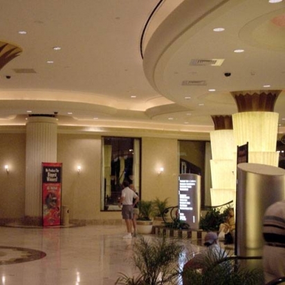 A photo of the indoor ceiling crafted for the lavish Hollywood Casino. Transitions, soft lighting, and sections of various heights are important aspects of the ceiling design.