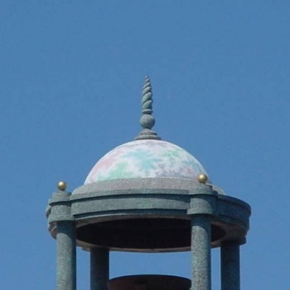 Stromberg's materials can be finished to match any color sample. This cupola features a soft color scheme incorporating white, purple, mauve, and greenish blue hues.