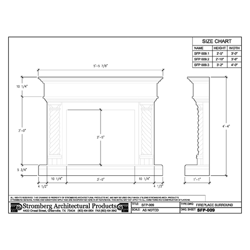 SFP-009 Fireplaces datasheetA stately fireplace that will add splendor to guest rooms, lobbies, and intimate dining establishments! The starting point of the selection is an extra-thick base that rests under the lighting area and supports the side sections. A substantial square opening provides enough room for a large crackling fire that will fill the room with soft light and warmth. The crowning section consists of several layered horizontal pieces and a solid rectangle. The aspect that nobody will be able to overlook is clearly the two column-inspired pieces that adorn the sides. With bases, caps, and twisted shafts, these miniaturized architectural columns are every bit as spectacular in appearance as those found on government buildings and hotels.