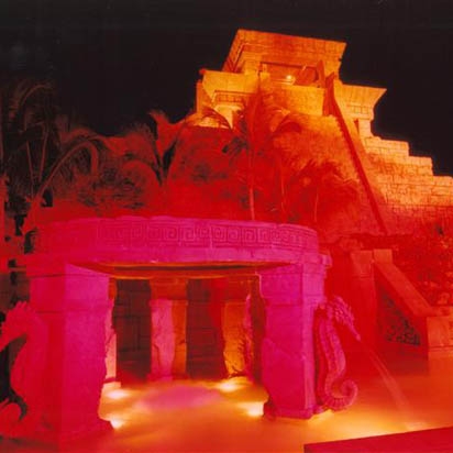 After the sun sets, this fountain and pool crafted by Stromberg is transformed into something truly magical. Seahorse fountains softly spray water into the lit pool below.