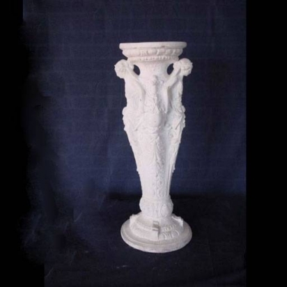 The shaft of this pedestal is embellished with intricate classical human figures. This piece would be especially suitable for Greek and Roman-inspired interiors or entryways.