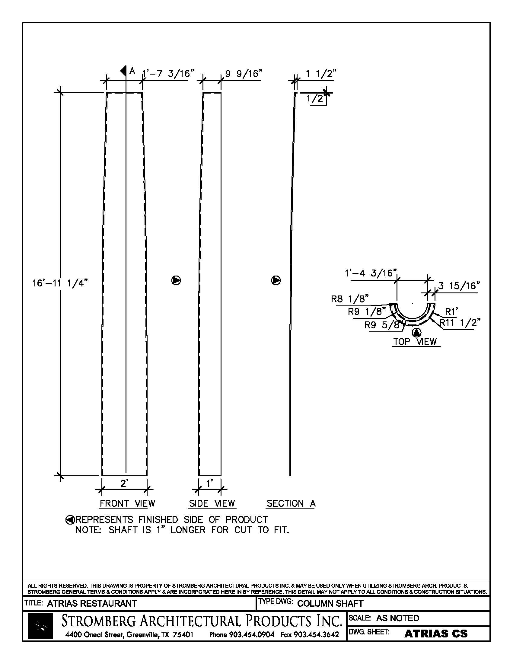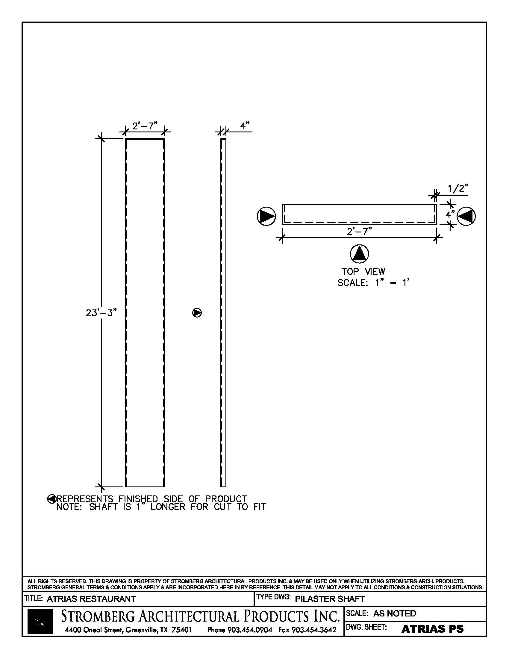 GFRC Pilaster ShaftDrawing of GFRC Pilaster Shaft |