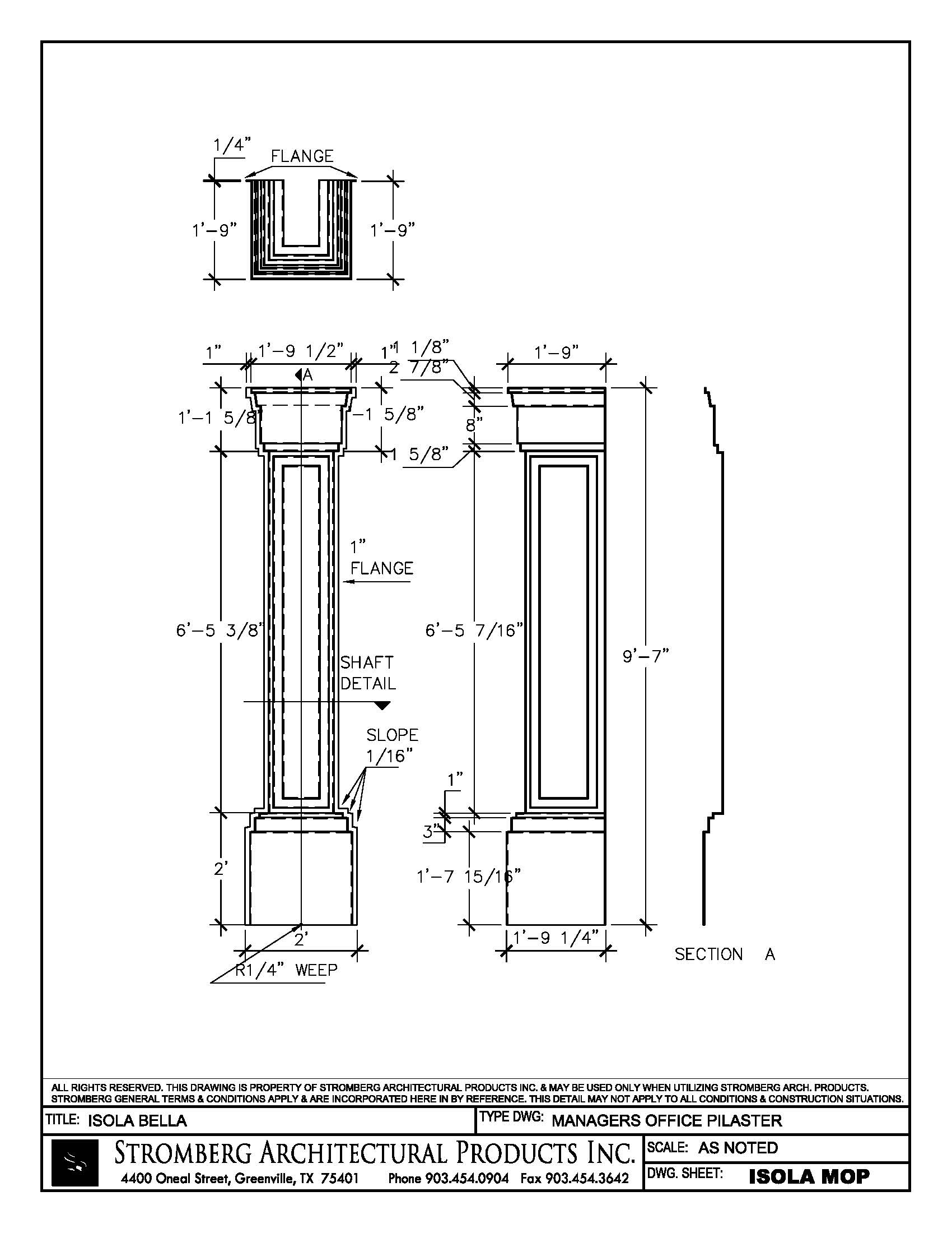 Drawing of GFRP Managers Office Pilaster